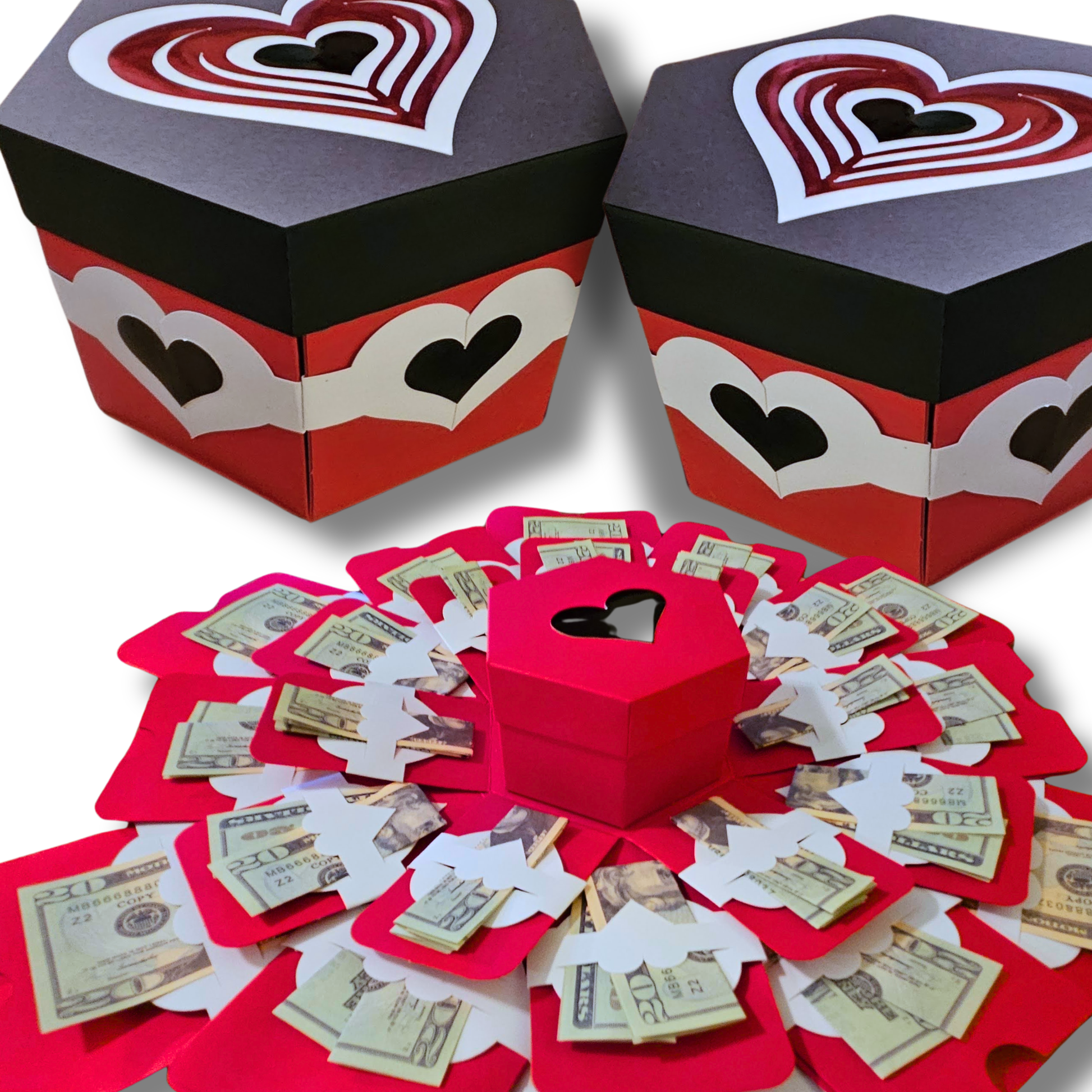 Valentine's Day Hearts On Red Box Explosion Money Gift Box